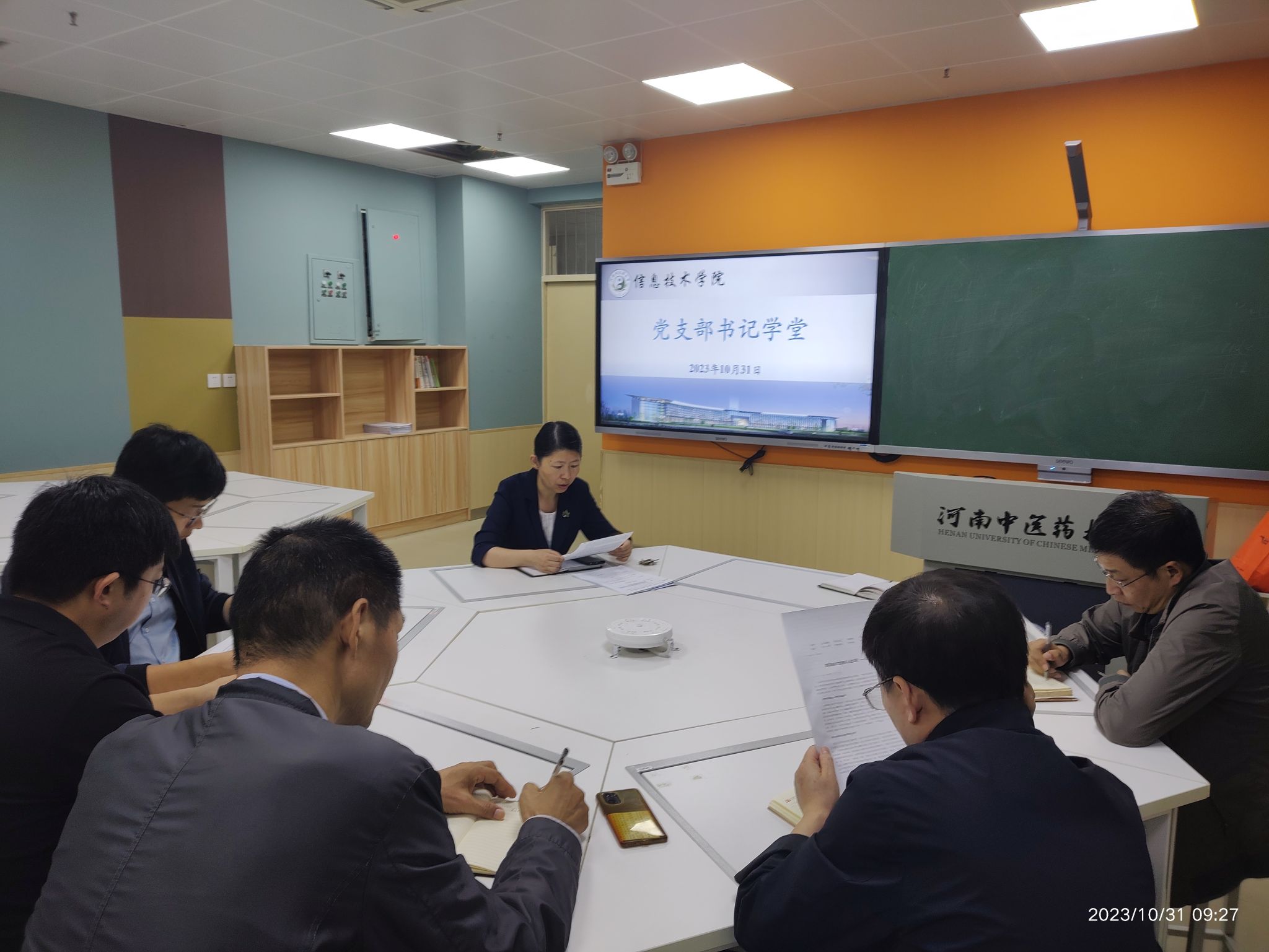 本网讯(文图/高海波)2023年10月31日,信息技术学院在BM516开展“党支部书记学堂”活动,全体党支部书记参加,活动由学院党委书记马赟主持。