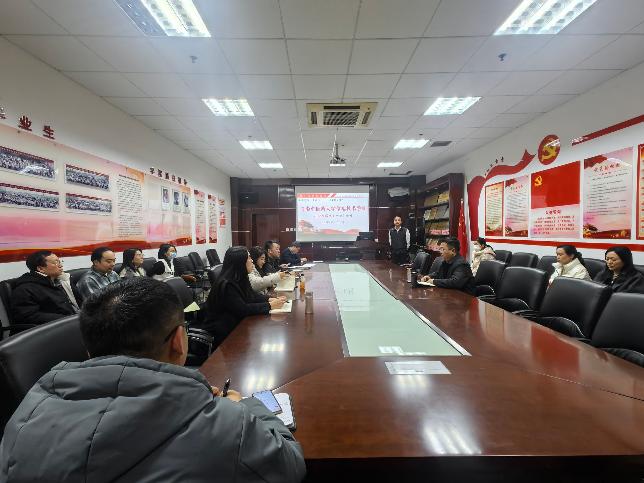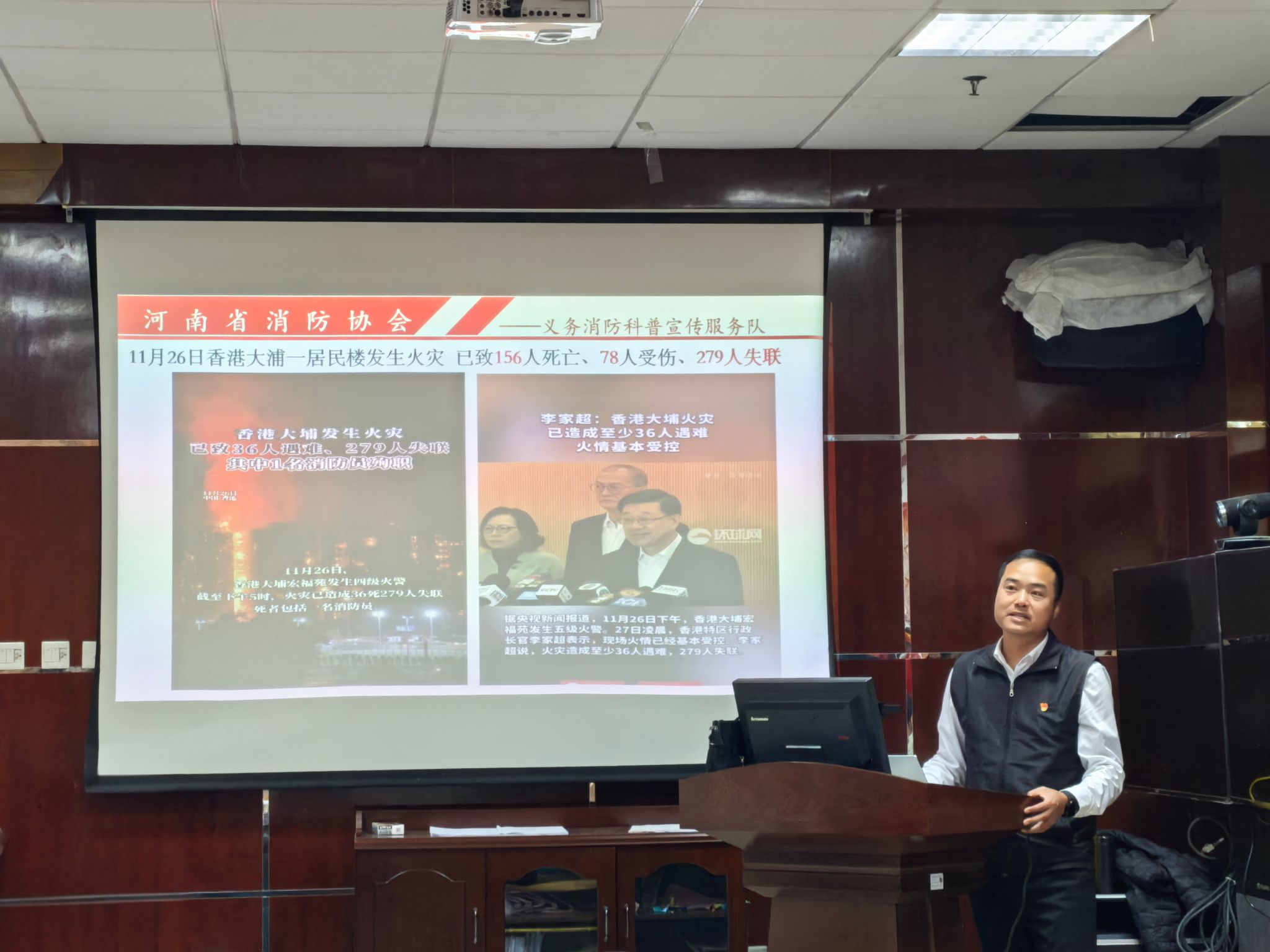 本网讯(文/图 刘培聪)为扎实推进平安校园建设,切实筑牢校园消防安全屏障,2025年12月9日下午,信息技术学院(智能医疗行业学院)特邀河南省消防协会王欢教员,在综合教学实验大楼A722会议室开展消防安全专题培训。学院领导班子及全体教职工参加此次培训。