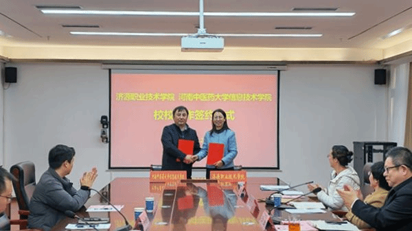 在全体与会人员的共同见证下,许成刚与济源职业技术学院副校长耿俊梅分别代表双方签署合作共建协议。协议的签署标志着两校合作迈入实质性推进新阶段。
