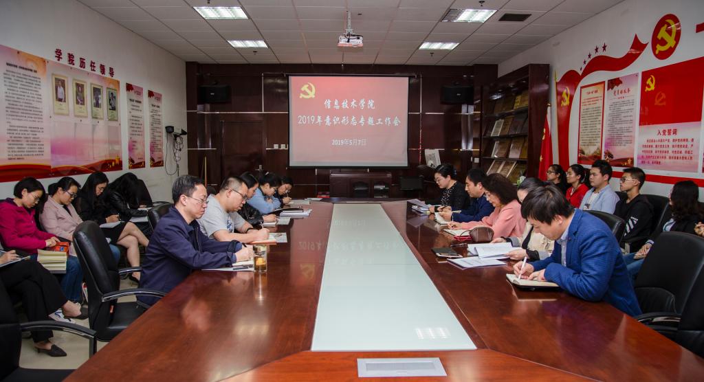 (文/李倩倩 图/秦东仁)2019年5月7日下午,信息技术学院在教学楼A722会议室召开2019年意识形态专题工作会议,学院领导班子成员、全体党支部书记及学院全体教职工参加会议,会议由信息技术学院副院长许玉龙主持。